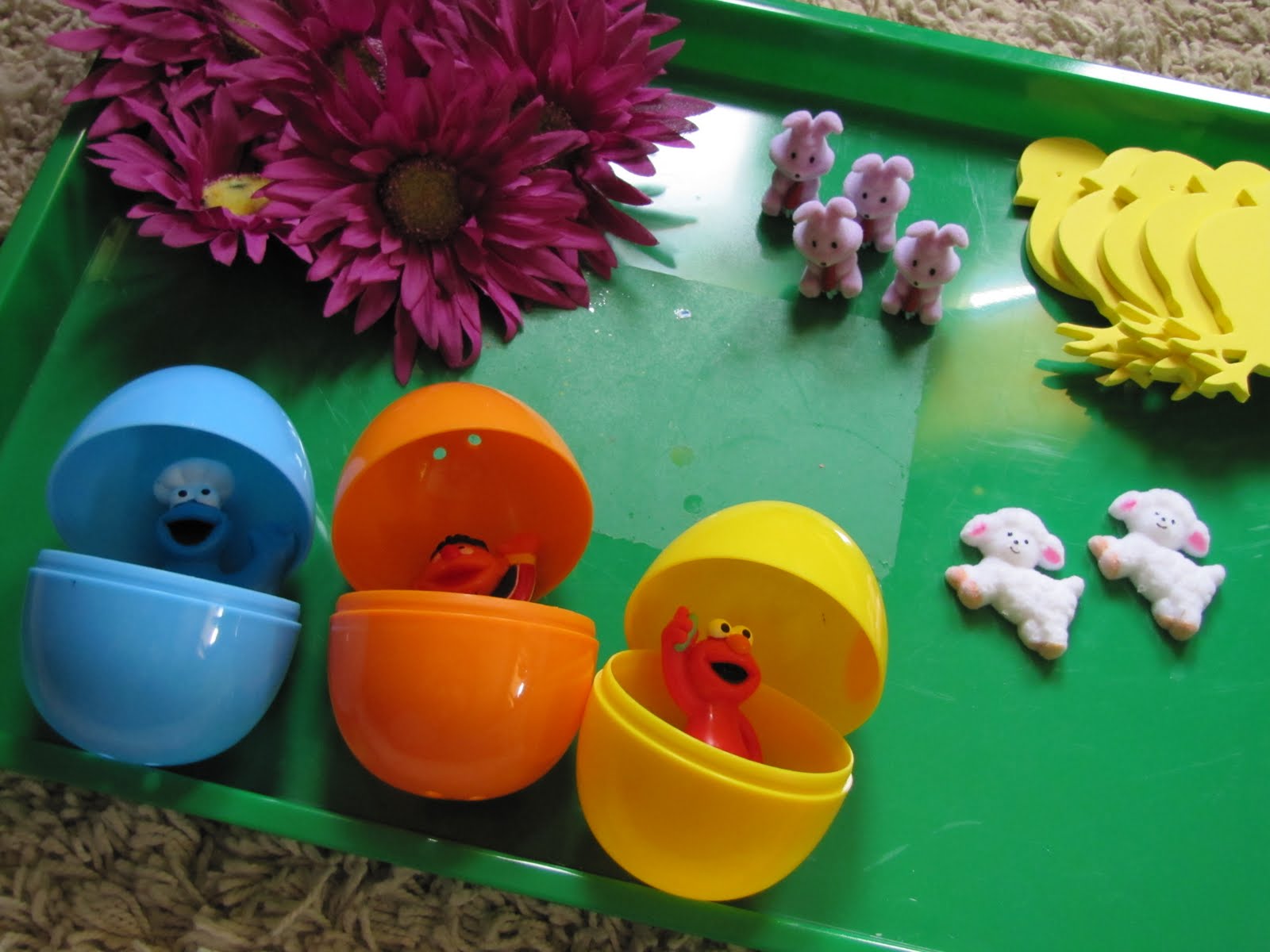 • Easter grass  (again...you can use other sensory input like sand or rice or beans.  I just liked the idea of grass for Easter)